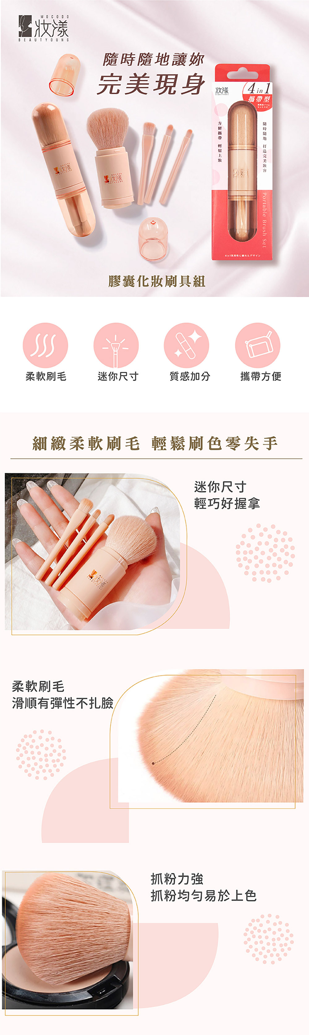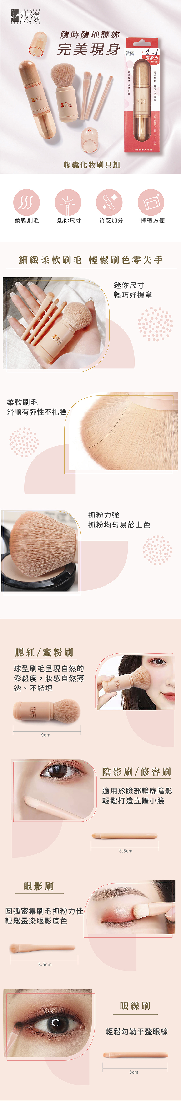 全臉要用到的刷具都在四合一膠囊刷具組裡!