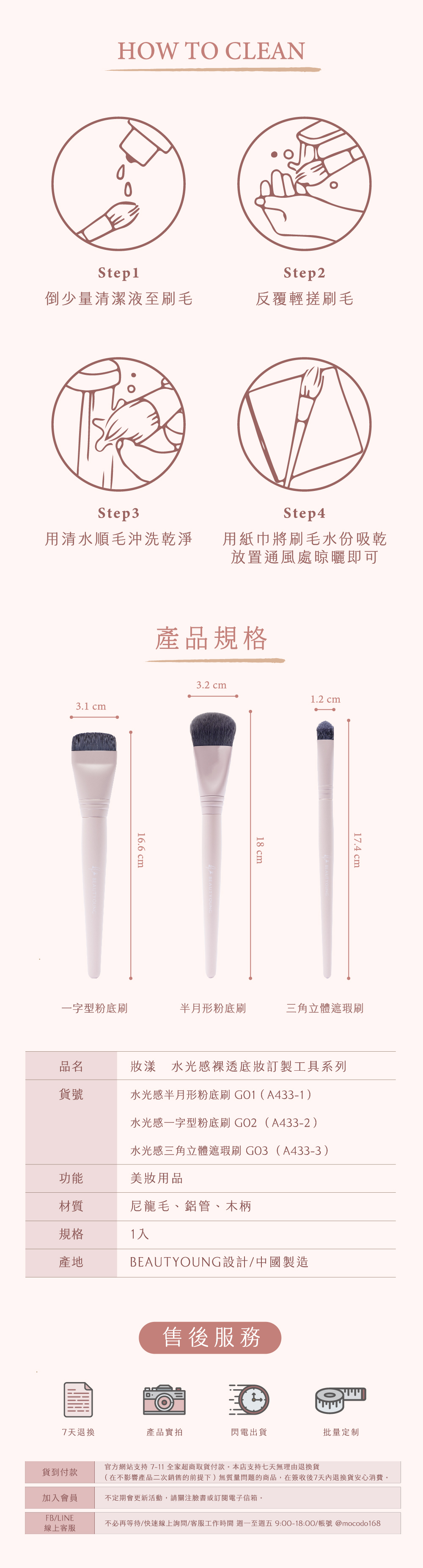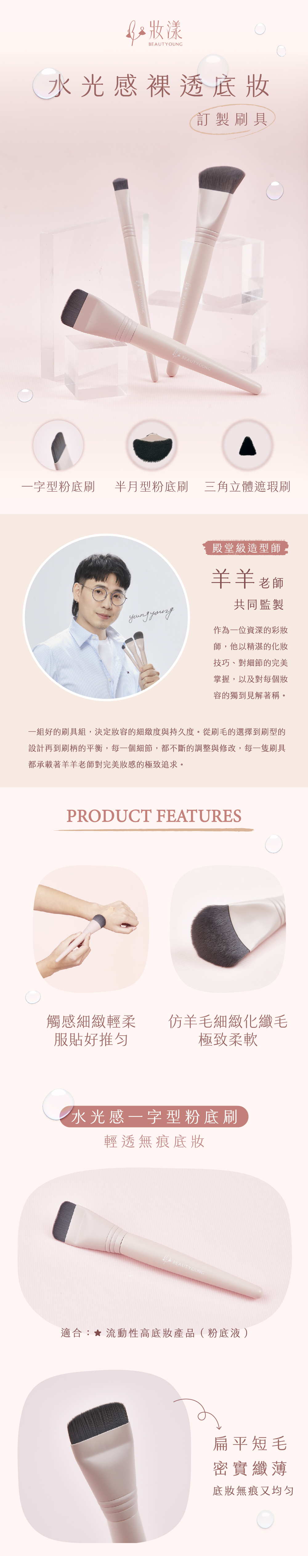 ★刷毛柔軟富有支撐力,超薄平頭設計,讓粉底絲滑延展,告別斑駁,厚重粉底。