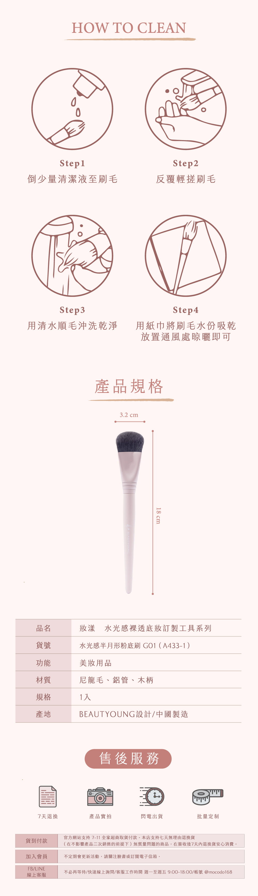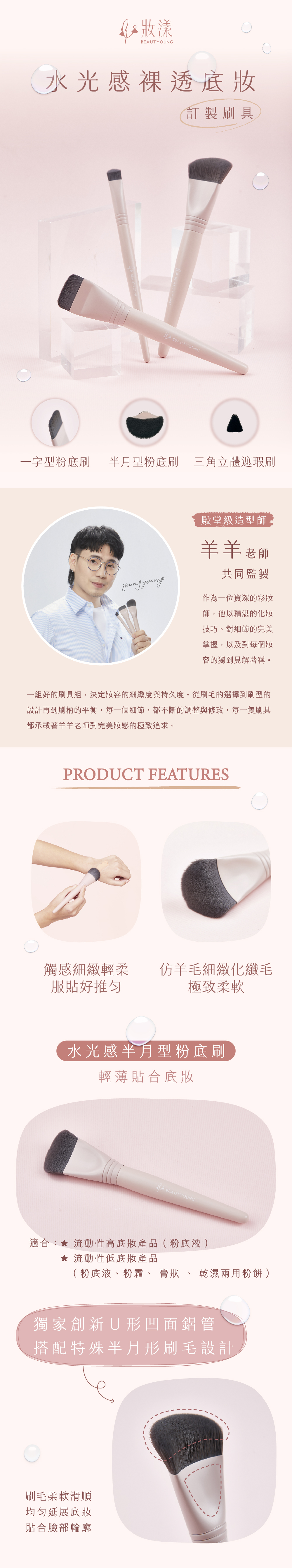 毛峰獨創曲面設計,高密度柔軟刷毛觸感,如絲綢般輕盈舒適,刷出順滑流暢粉底延展感。